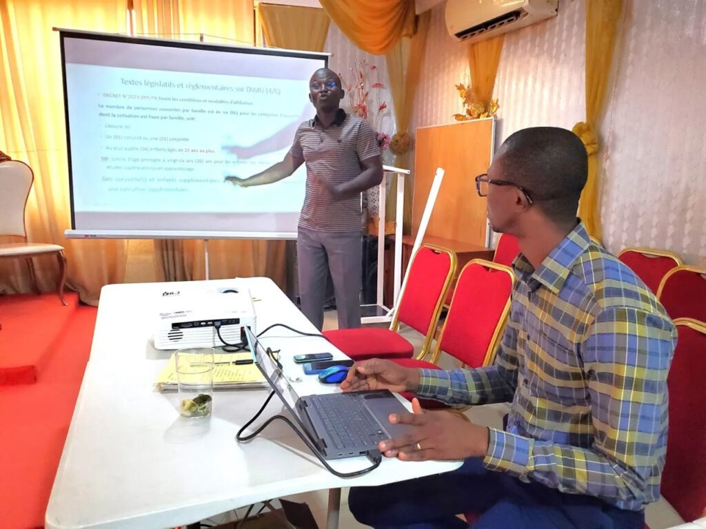 « Nous avons également pris soin de leur parler des principes fondamentaux de l’AMU, notamment la solidarité nationale, l’équité, la mutualisation des risques et la protection financière des populations face aux dépenses de santé. À cet effet, des précisions ont été apportées sur les conditions d’accès à l’Assurance maladie universelle, ainsi que sur les tests et mécanismes mis en place pour l’enregistrement des bénéficiaires, en particulier dans le cadre de l’extension de la couverture aux travailleurs non-salariés », précise Massamesso Katassoli, consultant sur le projet.